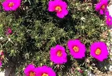 大花马齿苋:一年生草本,高10-30厘米。茎平卧或斜升,紫红色,多分枝,节上丛生毛。叶密集枝端,较下的叶不规则互生,叶片细圆柱形,无毛。花单生或数朵簇生枝端,直径2.5-4厘米,…全部>>