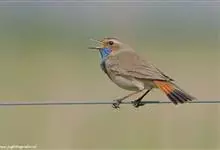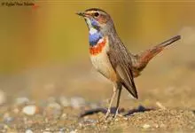 蓝点颏亦称“蓝喉歌鸲”,通称蓝靛颏儿。身体大小和麻雀相似,体长12-13厘米,体重17-18克。头部、上体主要为土褐色。眉纹白色。尾羽黑褐色,基部栗红色。颏部、喉部辉蓝色,下面有黑色横纹。下体白色。…全部>>