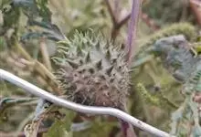 曼陀罗,茄科曼陀罗属一年生大型草本植物,全株光滑。有臭气;叶呈广卯形,边缘具不规则波状浅齿裂;花单生于枝杖间或叶腋,直立,有短梗;花萼是筒状裂片三角形,颜色为白色或淡紫色;果实为蒴果卵状,…全部>>