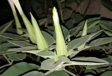 洋金花是茄科曼陀罗属植物,一年生草本植物,全株近于无毛。茎直立,圆柱形,高30~100cm,基部木质化,上部呈义状分枝。叶互生,上部的叶近于对生;叶柄长2~6cm,表面被疏短毛;叶片卵形、长卵形或心形,…全部>>