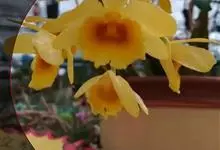矮石斛:茎直立或斜立,粗短,纺锤形或短棒状,具许多波状纵条棱和2-5节。叶2-4枚,近顶生,革质,舌形,卵状披针形或长圆形。总状花序顶生或近茎的顶端发出,具1-3朵花;花开展,除唇瓣的中裂片金黄色和…全部>>