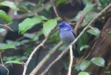 小仙鹟:体长11-13厘米,是一种深色鹟。雄鸟深蓝,脸侧及喉黑,臀白,前额、颈侧及腰为闪辉蓝色。与大仙鹟的区别在体型较小,胸蓝色,臀白色。雌鸟褐色,翼及尾棕色,颈侧具闪辉蓝色斑块,喉皮黄,项纹浅皮黄。…全部>>
