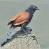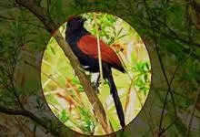 褐翅鸦鹃,是鹃形目鸦鹃科鸦鹃属的鸟类。褐翅鸦鹃的身体为黑色;头颈和胸带蓝紫色金属光泽并具黑亮的羽干纹,下胸至腹部泛金属绿光泽;两翼和肩部为棕栗色,外侧飞羽具暗色羽端,尾羽闪铜绿色光泽;虹膜赤红色,…全部>>
