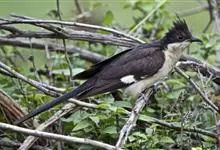 斑翅凤头鹃: 成鸟具羽冠,上体及头侧、翅、尾等黑色,具铁绿色亮辉,尾羽端部具白斑,两侧者形宽,中央者较狭;下体白色、淡灰白或略带棕黄色。虹膜褐至红褐色;嘴黑色;脚灰蓝黑色。…全部>>