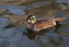 绿翅鸭是小型鸭类,体长37厘米,体重约0.5千克。嘴脚均为黑色。雄鸟头至颈部深栗色,头顶两侧从眼开始有一条宽阔的绿色带斑一直延伸至颈侧,尾下覆羽黑色,两侧各有一黄色三角形斑,在水中游泳时,极为醒目。…全部>>