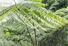 黑桫椤 Copel.)是桫椤科、桫椤属植物,植株高1-3米,有短主干,或树状主干高达数米,顶部生出几片大叶。叶柄红棕色;叶片大,长2-3米;羽片互生,斜展;小羽片约20对,互生;叶脉两边均隆起,…全部>>