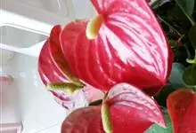 花烛,别名红鹅掌、红掌、安祖花等,为天南星科花烛属的一种多年生草本植物。其茎矮;叶互生,叶片革质,有光泽,阔心形、圆心形,先端钝或渐尖,基部深心形;肉穗花序有细长花序梗,佛焰苞深红色或橘红色,…全部>>