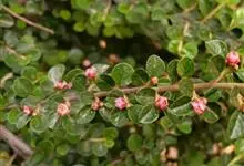 平枝栒子,蔷薇科栒子属落叶或半常绿匍匐灌木,枝水平开张成整齐二列状;叶近圆形或宽椭圆形,稀倒卵形,上面无毛,下面有疏平贴柔毛;花粉红色,近无梗;花萼具疏柔毛,萼筒钟状;花瓣直立,倒卵形;果实近球形,…全部>>