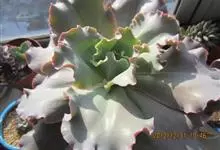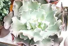 女王花笠,又名扇贝石莲花、女王花舞笠,是景天科拟石莲花属的多肉植物。由美国加利福尼亚州的育种师Dick Wright于1964年培育。特征是呈大波浪状褶皱的红色叶缘和气质高贵的粉紫色调。…全部>>