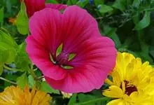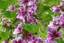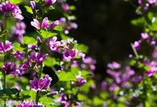 锦葵:二年生或多年生直立草本,高50-90厘米,分枝多,疏被粗毛。叶圆心形或肾形,具5-7圆齿状钝裂片,两面均无毛或仅脉上疏被短糙伏毛。花3-11朵簇生,小苞片3,长圆形疏被柔毛;花紫红色或白色,…全部>>