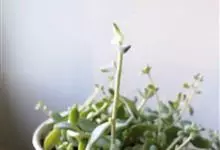 玉米石是景天科、景天属植物。多年生草本多浆植物。植株低矮丛生,多分枝。叶膨大成圆筒形、卵形或近小球形,互生至簇生,长0.6-1.2厘米,宽0.4-0.7厘米,叶端钝圆,亮绿色,肉质,硝带红晕,…全部>>