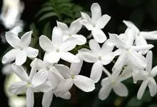 素馨花,木犀科素馨属多年生的攀援灌木植物。攀援灌木,小枝圆柱形,具棱或沟;叶对生,叶轴常具窄翼,小叶片卵形或长卵形;聚伞花序顶生或腋生,花序梗长,苞片线形,花萼无毛,裂片锥状线形,花冠白色,…全部>>