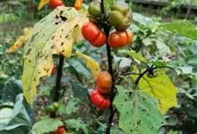 珊瑚樱是茄科茄属植物。株高达2米;植株无毛;叶窄长圆形或披针形,长1-6厘米,基部窄楔形下延,全缘或波状,侧脉4-7对;叶柄长2-5毫米;花单生,稀双生或成短总状花序与叶对生或腋外生,…全部>>