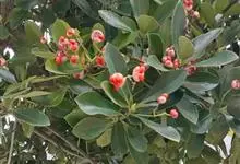 常绿灌木或小乔木,高达8米。 叶光亮革质,倒卵形或窄长椭圆形,长3-6厘米,宽2-3厘米。 聚伞花序腋生,总花梗长2.5-3.5厘米,1-2回2歧分枝,每分枝顶端有5-12花的短梗小聚伞花序;花白色…全部>>