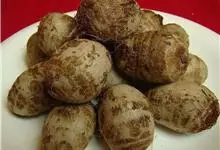 芋头又称芋、芋艿,天南星科植物的地下球茎,形状、肉质因品种而异,通常食用的为小芋头。多年生块茎植物,常作一年生作物栽培。叶片盾形,叶柄长而肥大,绿色或紫红色;植株基部形成短缩茎,逐渐累积养分肥大成肉…全部>>