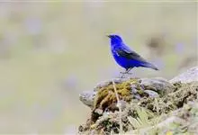蓝大翅鸲是鹟科、大翅鸲属小型鸟类,体长19-21厘米。两翅尖长。雄鸟通体鲜紫蓝色具金属光泽。两翅和尾黑色。雌鸟上体灰褐色,头、颈、翕具棕白色纵纹,翅上有白色翅斑。虹膜暗褐色,嘴、脚黑色。…全部>>