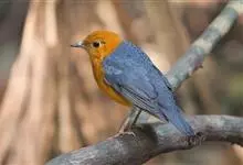 橙头地鸫是鸫科、地鸫属中型鸟类,体长18-22厘米。整个头、颈和下体橙栗色,其余上体包括两翅和尾蓝灰色或橄榄灰色,翅上多具白色翅斑。虹膜褐色或棕褐色,嘴黑褐色或黑色,脚橙黄色或肉黄色。特征极明显。…全部>>