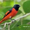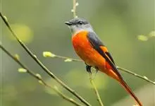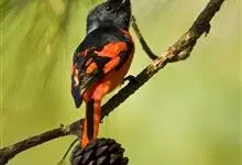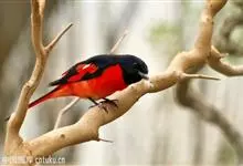 灰喉山椒鸟:共有8个亚种。体长18-22厘米。雄鸟头部和背亮黑色,腰、尾上覆羽和下体朱红色,翅黑色具一大一小的两道朱红色翼斑。中央尾羽黑色,外侧尾羽基部黑色,端部红色。…全部>>