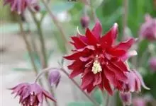 耧斗菜,毛茛科耧斗菜属多年生草本。根肥大,圆柱形;基生叶少数,二回三出复叶;叶片楔状倒卵形;叶柄疏被柔毛或无毛;花瓣瓣片与萼片同色,直立,倒卵形;雄蕊花药长椭圆形,黄色;退化雄蕊白膜质,…全部>>