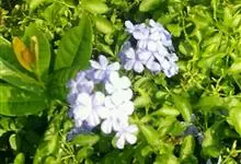 蓝花丹是白花丹科、白花丹属的常绿亚灌木。高约1米;叶薄,呈菱状卵形至狭长卵形;穗状总状花序,总花梗短,花冠淡蓝色至蓝白色,呈倒卵形,苞片呈线状狭长卵形,小苞呈狭卵形或长卵形,…全部>>