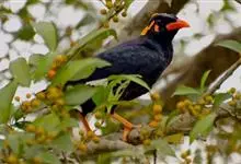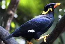 金冠树八哥为椋鸟科树八哥属的鸟类。体长约23厘米,闪辉黑色。特征为具翼斑及颏黄色,脸颊裸露皮肤粉黄色。分布于印度、缅甸、泰国以及中国大陆的云南、广东等地。…全部>>