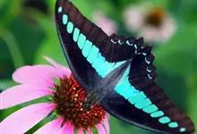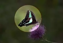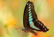 青带凤蝶Graphium sarpedon ,又名青凤蝶,是最普遍的中型凤蝶,飞行速度很快。青带凤蝶的翅膀中央有许多浅蓝色的斑点,很整齐地排列成一条直线。这些斑点由上而下逐渐变大,就像一条青色的带子。全部>>