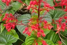 赪桐 Sweet)是唇形科、大青属灌木,高1-4米,叶片圆心形,顶端尖或渐尖,基部心形,边缘有疏短尖齿,表面疏生伏毛,二歧聚伞花序组成顶生,大而开展的圆锥花序,花序的最后侧枝呈总状花序,花萼红色,…全部>>