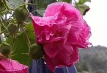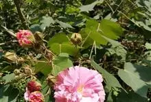 木芙蓉,锦葵科木槿属落叶灌木或小乔木。小枝上有细绒毛;叶片为卵状心形,托叶为披针形,常早落;花单生,花萼为钟形,花冠初为白色或淡红色,后逐渐变为深红色;果实为扁球形,有淡黄色的毛附着。花期8到10月。…全部>>