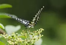 碎斑青凤蝶是凤蝶科、青凤蝶属昆虫。体背面黑色,具绿毛,腹面淡白色。翅黑褐色,斑纹淡绿色或浅黄色;前翅中室有5个斑纹排成1列;后翅基半部有5-6个大小不同的纵斑。后翅亚外缘的斑列加宽,…全部>>
