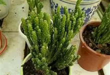 青锁龙是景天科、青锁龙属植物。多浆肉质亚灌木。株高30厘米左右。茎较细弱,且多分枝,整个植株成丛状,茎和分枝垂直向上生长。叶片鳞状呈三角形,叶小而密,在茎和枝上排列成4棱,非常紧密,以至难于与茎枝区分,…全部>>