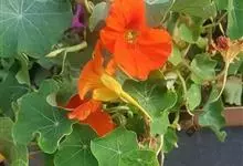 旱金莲是旱金莲科旱金莲属蔓生一年生草本植物。叶互生,叶柄向上扭曲,盾状,叶圆形,具波状浅缺刻,下面疏被毛或有乳点;花黄、紫、桔红或杂色,花托杯状,花瓣为圆形,边缘具缺刻;果实为扁球形;花果期6-10月,…全部>>