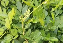 金叶女贞是木樨科女贞属木本植物。叶片为革,椭圆形或卵状椭圆形,新叶金黄色,老叶黄绿色至绿色;花为两性,呈筒状白色小花;果实为椭圆形,内含一粒种子,颜色为黑紫色。花期5—6月,果期10月。…全部>>