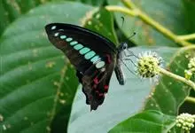 青带凤蝶Graphium sarpedon ,又名青凤蝶,是最普遍的中型凤蝶,飞行速度很快。青带凤蝶的翅膀中央有许多浅蓝色的斑点,很整齐地排列成一条直线。这些斑点由上而下逐渐变大,就像一条青色的带子。全部>>