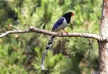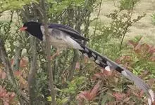 红嘴蓝鹊,别名山鹊、长尾鹊,是鸦科蓝鹊属的一种观赏性较强的大型鸣禽。该物种为体长54~65cm,头、颈、喉和胸黑色,头顶至后颈有一块白色至淡蓝白色或紫灰色块斑,其余上体紫蓝灰色或淡蓝灰褐色。尾长呈凸状,…全部>>