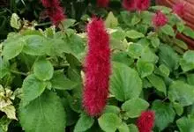 红穗铁苋菜:为大戟科、铁苋菜属植物,灌木,高0.5-3米。嫩枝被灰色短绒毛,毛逐渐脱落,小枝无毛。 花序色泽鲜艳,葇荑花序下垂,如狐狸尾状,雌花近卵形,长约0.8毫米,顶端急尖,具短毛;子房近球形,…全部>>