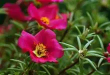 大花马齿苋:一年生草本,高10-30厘米。茎平卧或斜升,紫红色,多分枝,节上丛生毛。叶密集枝端,较下的叶不规则互生,叶片细圆柱形,无毛。花单生或数朵簇生枝端,直径2.5-4厘米,…全部>>
