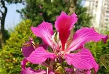 羊蹄甲,别名紫花羊蹄甲、玲甲花,是豆科羊蹄甲属的一种常绿乔木或灌木。树冠开展,枝桠低垂;树皮灰色至暗褐色,近光滑。枝幼时微被灰色短柔毛,后毛脱落;叶硬纸质,近圆形,基部浅心形,…全部>>