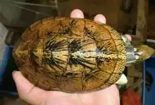 花龟,是龟鳖目龟科花龟属水栖龟类;头较小,头背皮肤光滑。背甲与腹甲以骨缝相连,甲桥明显,有鲜明的黄色细线纹从吻端经眼和头侧,并沿头的背腹面向颈部延伸;四肢及尾亦满布黄色细线纹。…全部>>