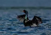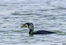 普通鸬鹚是属于鲣鸟目鸬鹚科鸬鹚属鸟类,又名水老鸦、鱼鹰、乌鬼、黑鱼郎等。体长720—900毫米,雌雄同型。通体黑色,有绿褐色金属光泽;喙厚重,喙基和喉囊橙黄色,脸颊及喉白色;夏羽颈及头饰具白色丝状羽,…全部>>