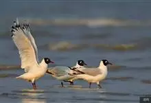 红嘴鸥:俗称“水鸽子”,体形和毛色都与鸽子相似,体长37-43厘米,翼展94-105厘米,体重225-350克,寿命32年。嘴和脚皆呈红色,身体大部分的羽毛是白色,尾羽黑色。脚和趾赤红色,冬时转为橙…全部>>
