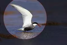 普通燕鸥是鸥科、燕鸥属下的一种迁徙夏候鸟。体型略小,约35厘米。头顶部黑色,背、肩和翅上覆羽鼠灰色或蓝灰色。颈、腰、尾上覆羽和尾白色。外侧尾羽延长,外侧黑色。下体白色,胸、腹沾葡萄灰褐色。…全部>>