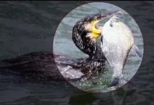 普通鸬鹚是属于鲣鸟目鸬鹚科鸬鹚属鸟类,又名水老鸦、鱼鹰、乌鬼、黑鱼郎等。体长720—900毫米,雌雄同型。通体黑色,有绿褐色金属光泽;喙厚重,喙基和喉囊橙黄色,脸颊及喉白色;夏羽颈及头饰具白色丝状羽,…全部>>