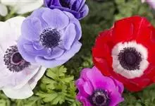 欧洲银莲花:是毛茛科、银莲花属的多年生草本植物。株高25-65厘米,具根状茎。叶为根出叶,3裂,成掌状深裂,具长柄。花茎自叶丛中抽出,花单生与茎顶,花色有白、红、粉、蓝紫色及复色等,花直径4-10厘…全部>>