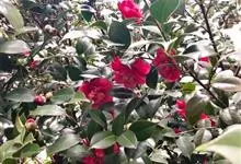 滇山茶:灌木至小乔木,有时高达15米,嫩枝无毛。叶阔椭圆形,上面干后深绿色,发亮,下面深褐色,无毛,侧脉6-7对,边缘有细锯齿。花顶生,红色,直径10厘米,无柄;苞片及萼片10-11片,花瓣红色,…全部>>