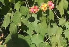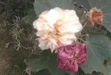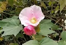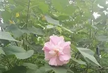 木芙蓉,锦葵科木槿属落叶灌木或小乔木。小枝上有细绒毛;叶片为卵状心形,托叶为披针形,常早落;花单生,花萼为钟形,花冠初为白色或淡红色,后逐渐变为深红色;果实为扁球形,有淡黄色的毛附着。花期8到10月。…全部>>