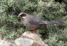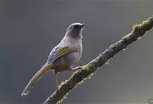 灰腹噪鹛是画眉科、噪鹛属鸟类。中型鸟类,体长21-25厘米。额黑色,头顶黑或灰色,眼先、脸白色。上体橄榄褐至棕褐色,尾和内侧飞羽具窄的白色端斑和宽阔的黑色亚端斑,外侧初级飞羽外翈蓝灰色或灰色,颧纹黑色。…全部>>