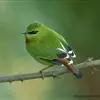 火尾绿鹛是莺科、绿鹛属小型鸟类,体长11-14厘米。上体绿色,头顶至枕具黑色鳞状斑,眼先和眼后黑色,眉纹黄绿色。两翅黑色具黄色和红色翅斑及白色端斑,极为醒目。中央一对尾羽绿色,外侧尾羽鲜红色。…全部>>