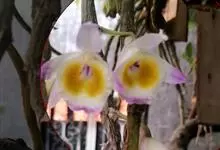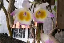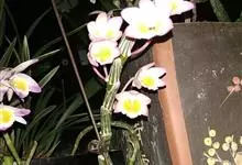 玫瑰石斛是兰科石斛属的多年生附生草本植物。茎斜下或下垂,青绿色,圆柱形,节间鞘具绿或白色相间的条纹;叶窄披针形;花序短,生于已落叶的老茎上部,花序梗长,萼片和花瓣白色,上部带淡紫色,干后蜡质状,…全部>>