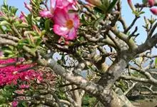 沙漠玫瑰 Roem. & Schult.),别名天宝花、阿拉伯沙漠玫瑰、索马里沙漠玫瑰等,为夹竹桃科沙漠玫瑰属的一种多肉灌木或小乔木植物。其树干肿胀,茎干光滑,白绿色或灰白色,…全部>>