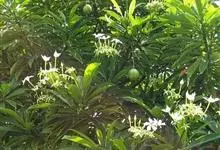 海杧果是夹竹桃科海杧果属的乔木。高4~8米;树皮为灰褐色;全株有丰富乳汁;叶厚纸质,呈倒卵状长圆形或倒卵状披针形,叶面为深绿色,叶背为浅绿色;花为白色,有芳香;核果双生或单个,呈阔卵形或球形,…全部>>